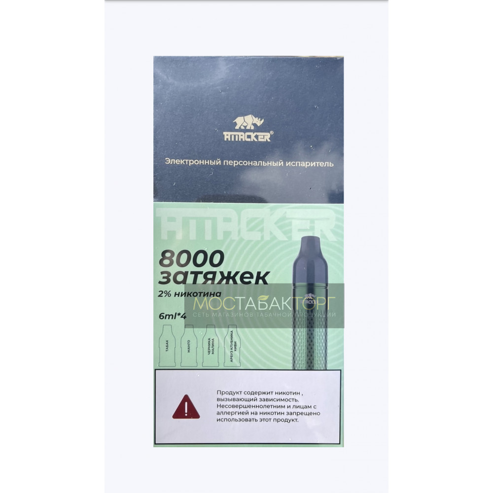 Набор Attacker K-One 8000 Зелёный (вкусы: Табак, Манго, Черника Малина, Арбуз Клубника Киви)