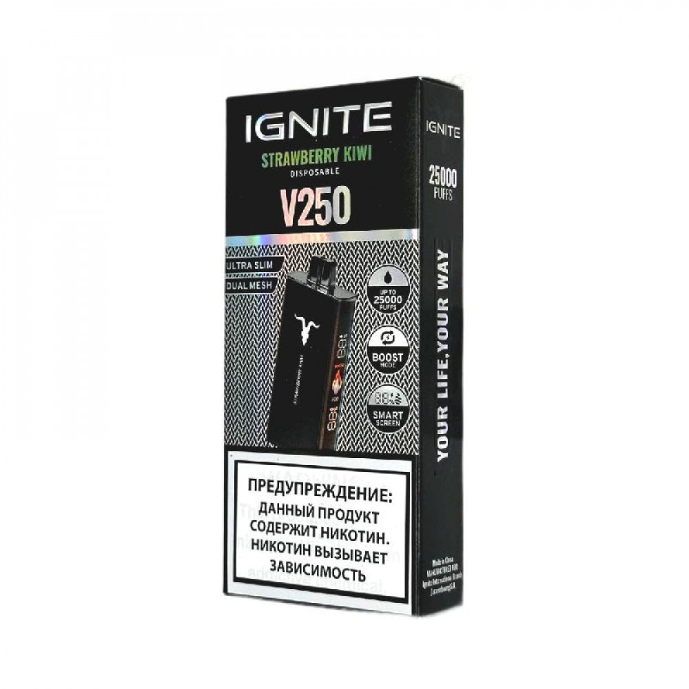 Электронная сигарета Ignite V250 Black 25000 - Strawberry Kiwi (Клубника киви) - купить в Калаче-на-Дону